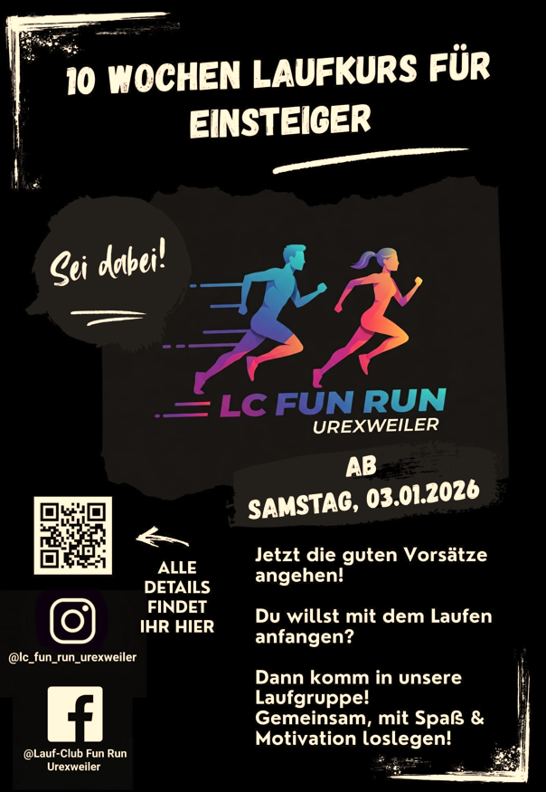 Am Ende noch zwei Vorabinfos, die Details folgen in Kürze. Bei unserer Vorstandssitzung in der vergangenen Woche haben wir unseren Jahresplan 2026 abgestimmt. Unter anderem werden wir mit dem 8. Osterlauf 2.0, dem 1. Pumpkin Run und dem 2. Tag des Laufens drei eigene Laufveranstaltungen über den Saarländischen Leichtathletik Bund anmelden. Auf unserer Homepage findet ihr unter dem Reiter “Laufkalender Saarland“ neben unseren Läufen alle anderen Veranstaltungen, die 2026 beim SLB gemeldet wurden.