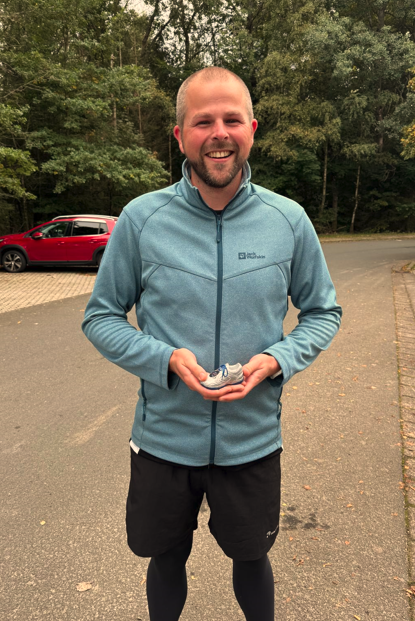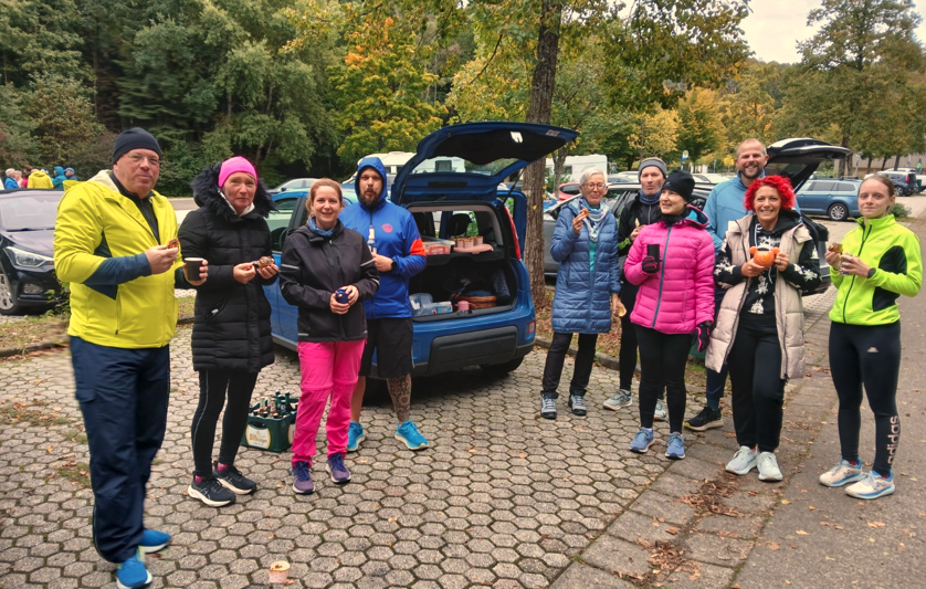 Bei der nun schon traditionellen Kofferraum-Party konnten wir eine vereinsinterne Auszeichnung nachholen. Daniel Geßner, der heute unsere schnellste Laufgruppe sicher ins Ziel führte, lief im August seinen ersten Halbmarathon in starken 1:54:59 Std. Quasi spontan ging es nach Mühlheim in Hessen zum Wald-Halbmarathon mit ordentlich Höhenmetern. Umso erstaunlicher seine schnelle Endzeit. Jeder Fun Runner oder Fun Runnerin, der/die ihren ersten 5km-Lauf, Halbmarathon oder Marathon läuft, wird mit einem bronzenen, silbernen oder goldenen Laufschuh ausgezeichnet. Daniel erhielt somit seinen silbernen Laufschuh für das Halbmarathon-Finish. Verdient ist verdient, herzlichen Glückwunsch.
