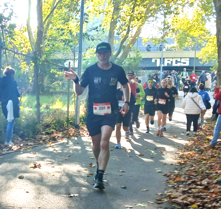 Bei Eva zerstreuten sich die Bedenken, die man bei seinem ersten Marathon so hat direkt nach dem Startschuss. Bei tollem Herbstwetter ging es auf dem Leinpfad zuerst in Richtung Frankreich, dann aber immer auf langgezogenen Passagen nach Völklingen. Mit einem guten Rückenwind war zu befürchten, dass der Rückweg hart werden könnte, zumal die Beine ab Kilometer 28 bei unserem Marathon-Greenhorn schwerer wurden. Doch weit gefehlt, denn im Gegensatz zu Martins Rückweg hatte Eva Glück, der Gegenwind legte sich auf ihrem Rückweg nach Saarbrücken. So konnte sie sogar die letzten Kilometer wesentlich schneller laufen, was eine tolle Erst- Finisherzeit von 4:55:31 Std. bedeutete.