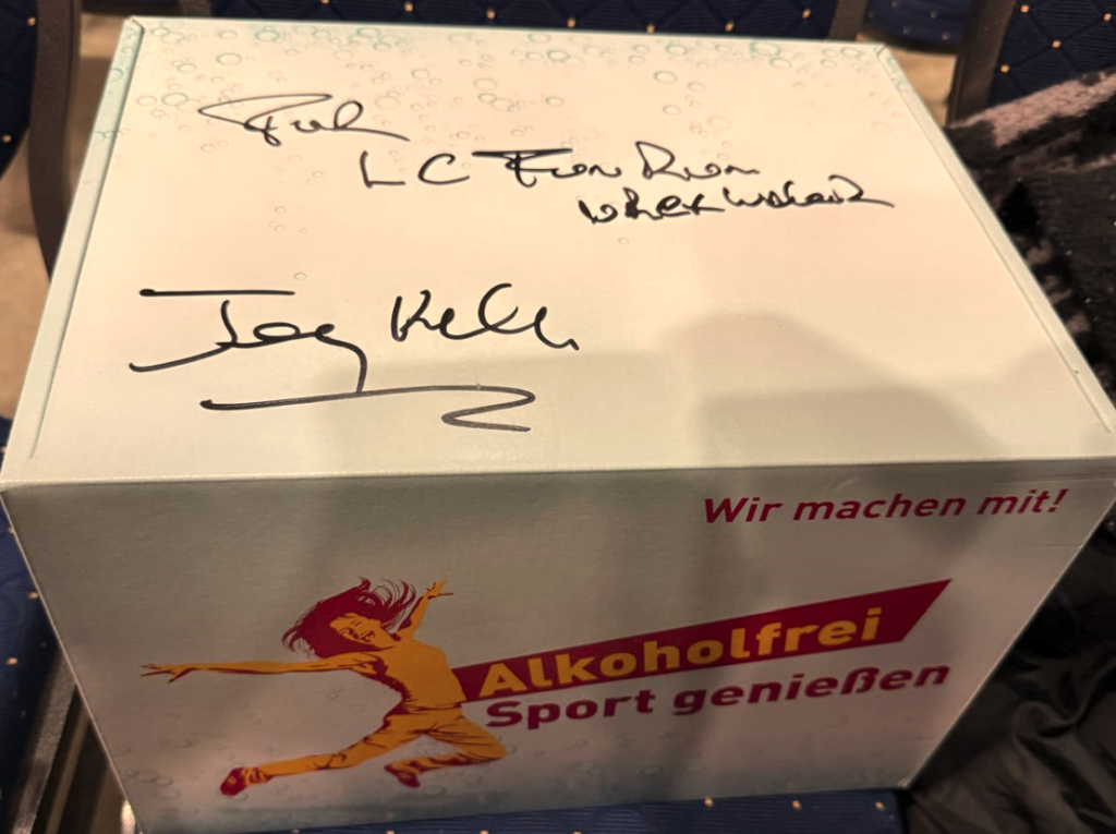 Hierbei wurden wir, gemeinsam mit 80 weiteren Sportvereinen, mehr als überrascht. Die Eloquenz, der Humor und auch die motivierende Art wie Joey Kelly seinen Vortrag hielt, war so für uns nicht zu erwarten. Der Abend wird für alle Beteiligten noch nachhaltig sein. So nahmen wir gern die Aktionsbox „Alkoholfrei Sport genießen“ in Empfang und werden dieses Motto mit der Box bei einer unserer Veranstaltungen weitergeben.