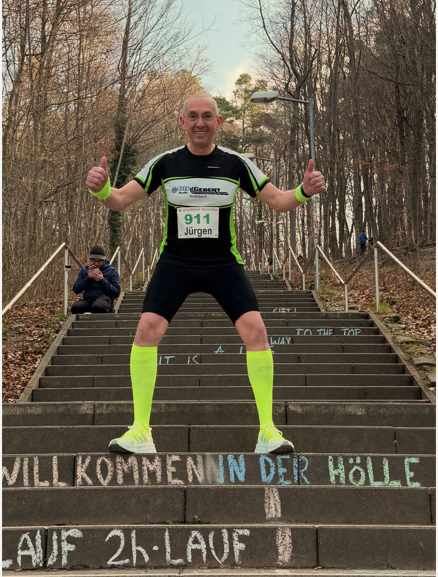Der Abschluss des Wochenendes gehört natürlich Jürgen. Ihn zog es zu den Roten Teufeln an den Betzenberg. Beim “Geilsten Verein der Welt“, wie die Pfälzer sagen, hatte sich das FCK-Running-Team vor 4 Jahren etwas besonderes ausgedacht. Es gilt die 206 Stufen zum Betze, also den STAIRWAY TO DEVIL, zu bezwingen. Hierbei gilt es zwischen der halben und der ganzen Hölle auszuwählen. Da die Runde inklusive Treppen knapp über einen Kilometer hat, gilt es 5 Mal oder 10 Mal den Teufel zu bezwingen. Jürgen wäre nicht Jürgen, wenn es nicht noch eine dritte Variante gäbe. Er meldete sich natürlich zum 2 Stundenlauf an.