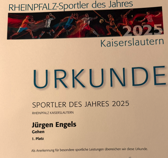 Unter der Woche platzte dann die sportliche Bombe: Die Rheinpfalz titelte mit einer echten Überraschung bei der Sportlerwahl. Jürgen Engels, unser absoluter Dauerstarter, wurde zum Sportler des Jahres gekürt! In dem entsprechenden Artikel wurde die Wahl als große Überraschung gefeiert, doch für uns ist es die verdiente Anerkennung für seinen unermüdlichen Einsatz. Für Jürgen war dieser Abend hochemotional und, wie er selbst sagte, eine Art Seelenbalsam. Angesichts seines gesundheitlichen Hintergrunds hat er sich diesen Titel mehr als verdient. Wir sind unheimlich stolz, einen Sportler des Jahres in unseren Reihen zu haben.